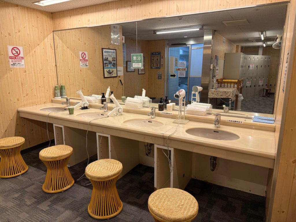 宿泊者は受付の横に置いてあるアメニティを自由に使える様になっており、洗顔料、ピーリング剤、メーカーのシャンプー、リンス、ボディソープを選んで大浴場へ持っていけます。