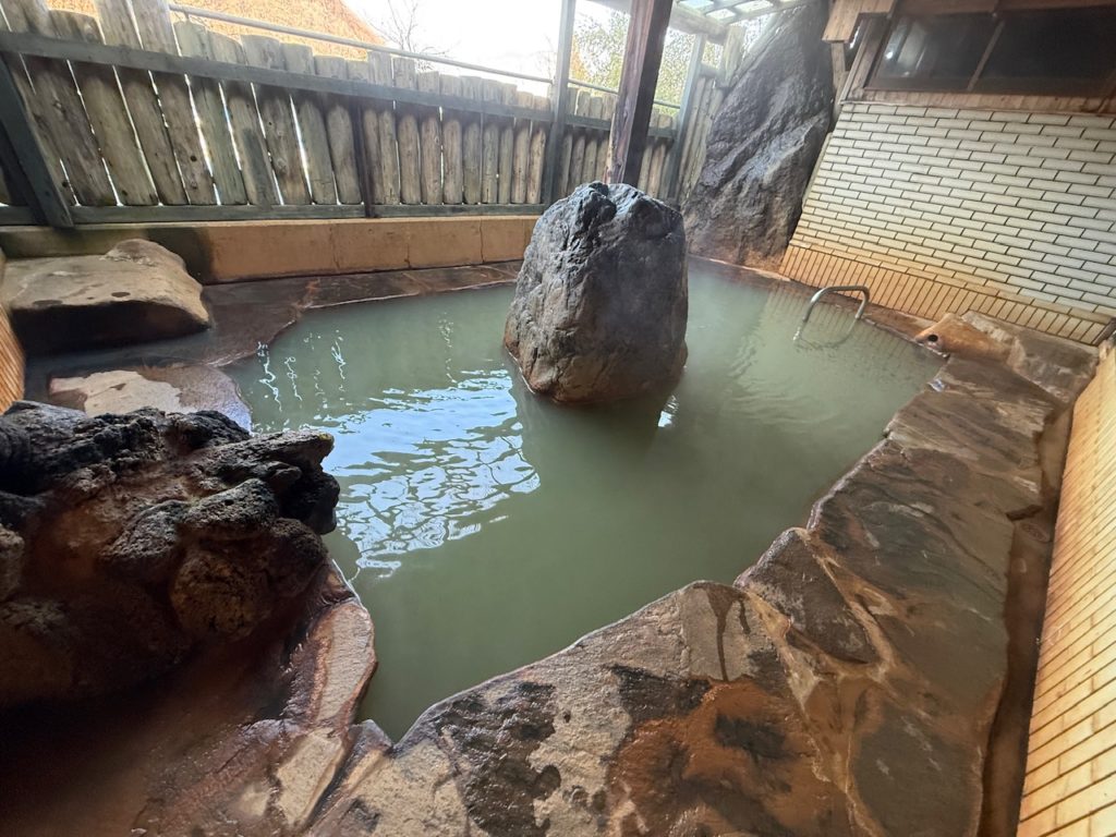 緑色に濁った湯は内湯より外気の影響で温度が低くなっていたのでゆっくり入ることができました。