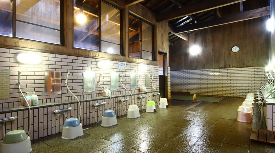 洗い場は12つありました。人と人の間に仕切りがないタイプです。