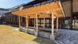 施設の前に広い駐車場があり、足湯と書かれた看板がありました。