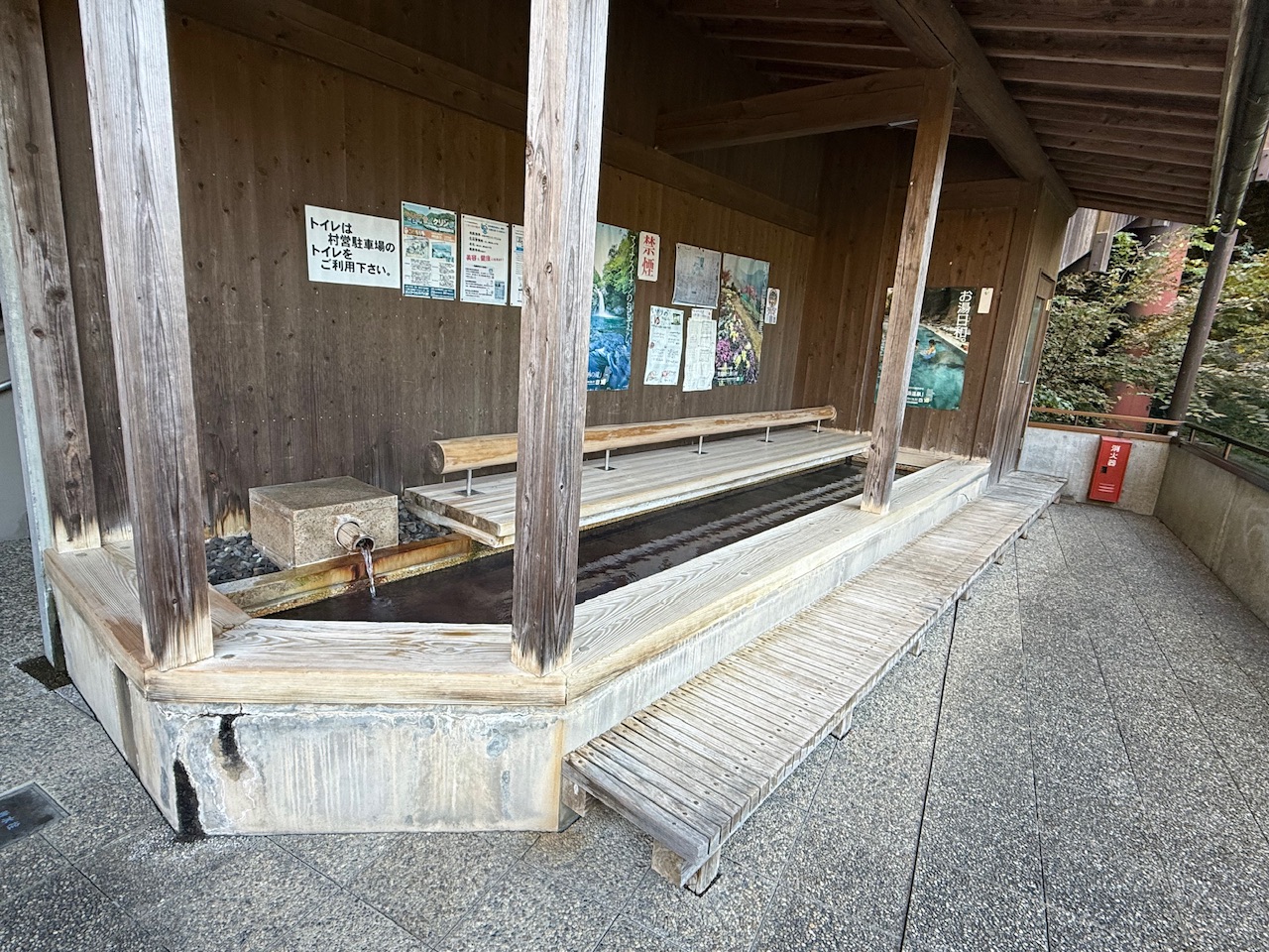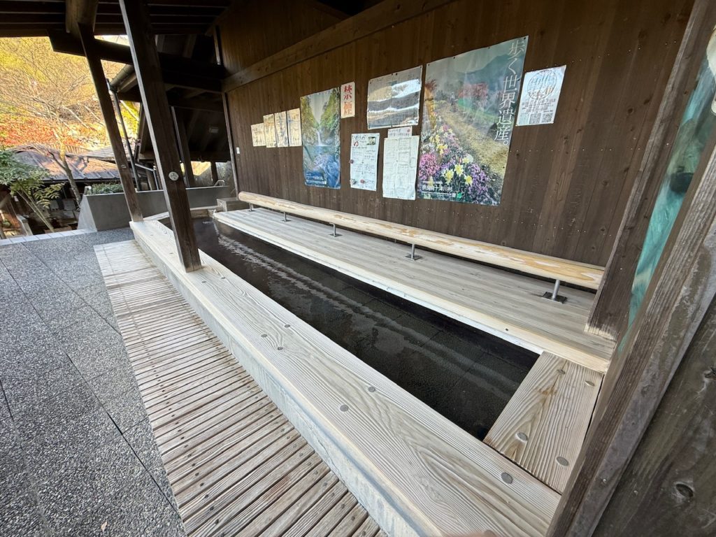 十津川バスセンターから道路を挟んだ湖畔沿いに温泉施設があり、入口には飲泉場がありました。