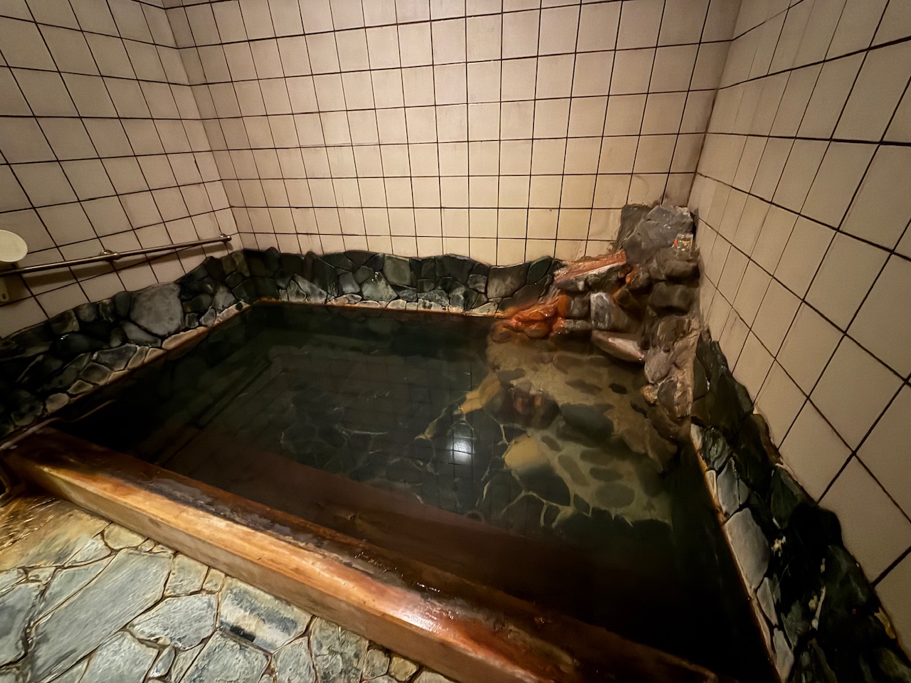 男性の内風呂も1つですが、横に長い浴槽となり、女性よりは少し大きな浴槽でした。