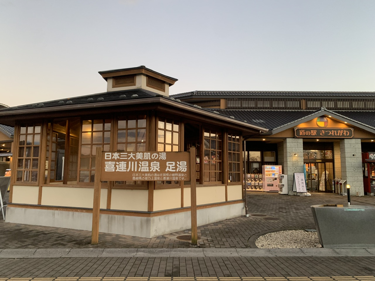 道の駅の駐車場に車を止めて施設が立ち並ぶ中央に足湯施設がありました。
