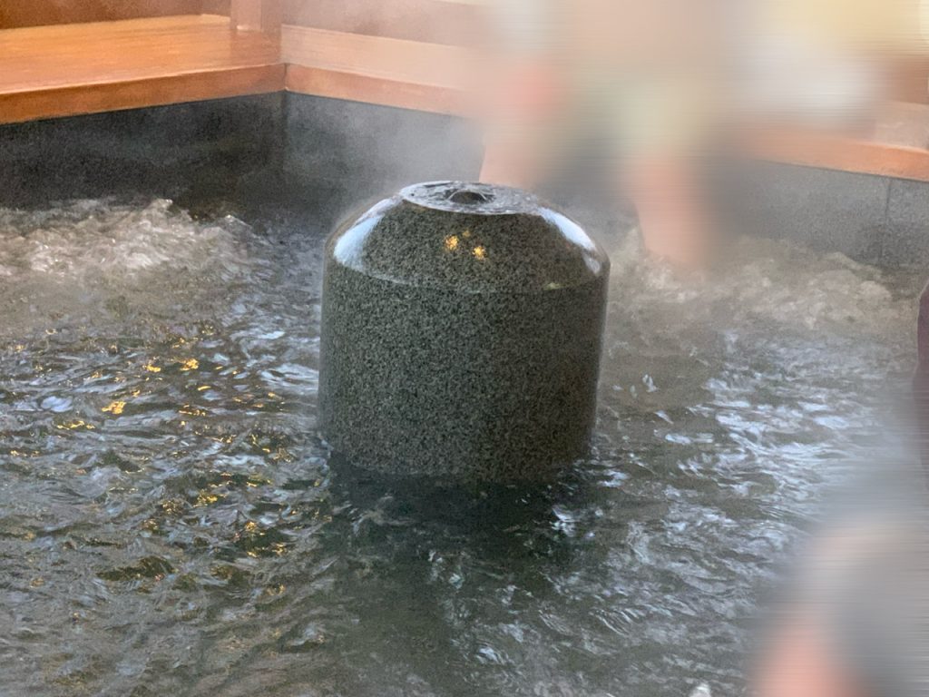 中央から源泉がかけ流されていて足元からジャグジーが吹き出して足を程よく刺激してくれて気持ちがよいです。
