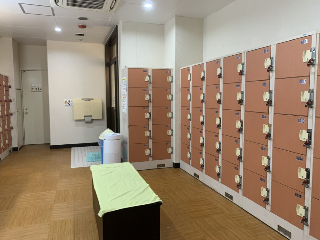 更衣室に鍵付きロッカーが沢山ありました。