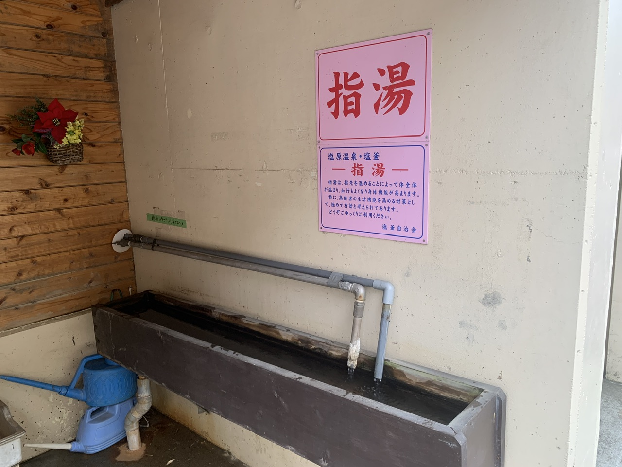 こちらの指湯は塩原温泉 塩釜地区にあり、地域のまちづくり団体(塩湧会)が力を合わせて作った手作りの指湯となります。