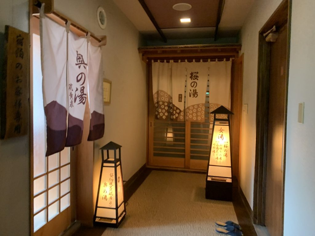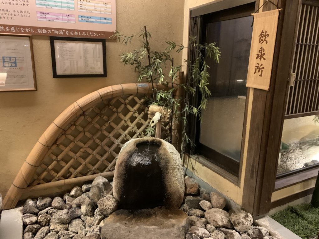 趣きがある旅館で脱衣所に向かう通路に温泉が飲める場所がありまた。