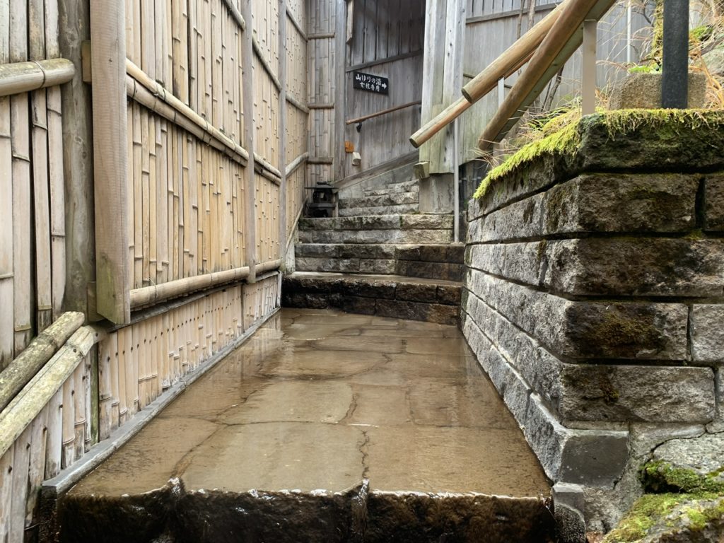 女性専用の露天風呂に向かうと通路にも温泉が流れていました。