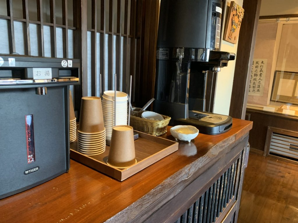 入浴を終えてロビーに戻ると受付の向かいに休憩スペースがありコーヒーなどの飲み物が無料で飲めました。