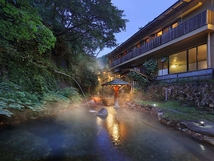 那須温泉郷の最奥地、標高1300mにある秘湯の宿大丸温泉は川と温泉が一体になった大きな混浴の露天風呂がある温泉宿です。