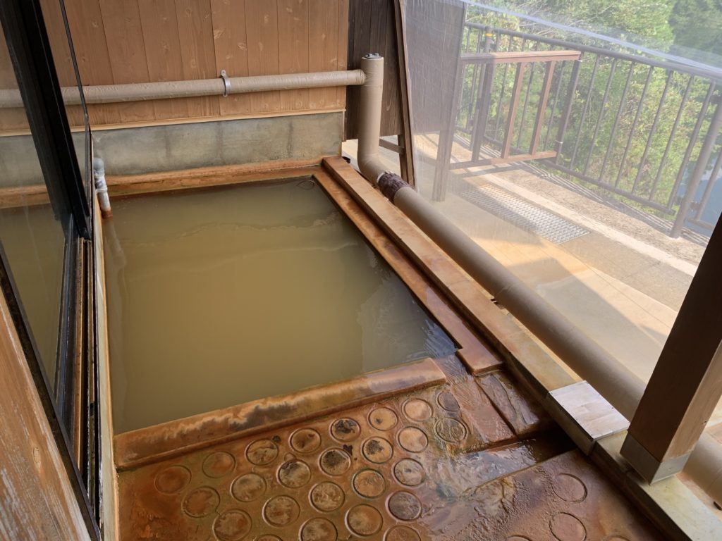 茶褐色で濁りのある湯です。