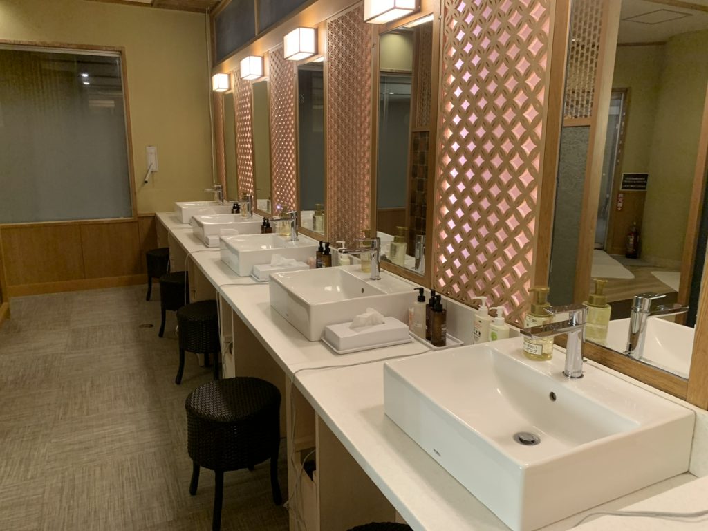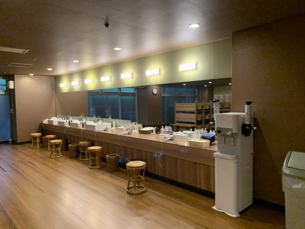 浴室前の広場があり、入浴後にゆっくり休憩できる広いスペースがありました。