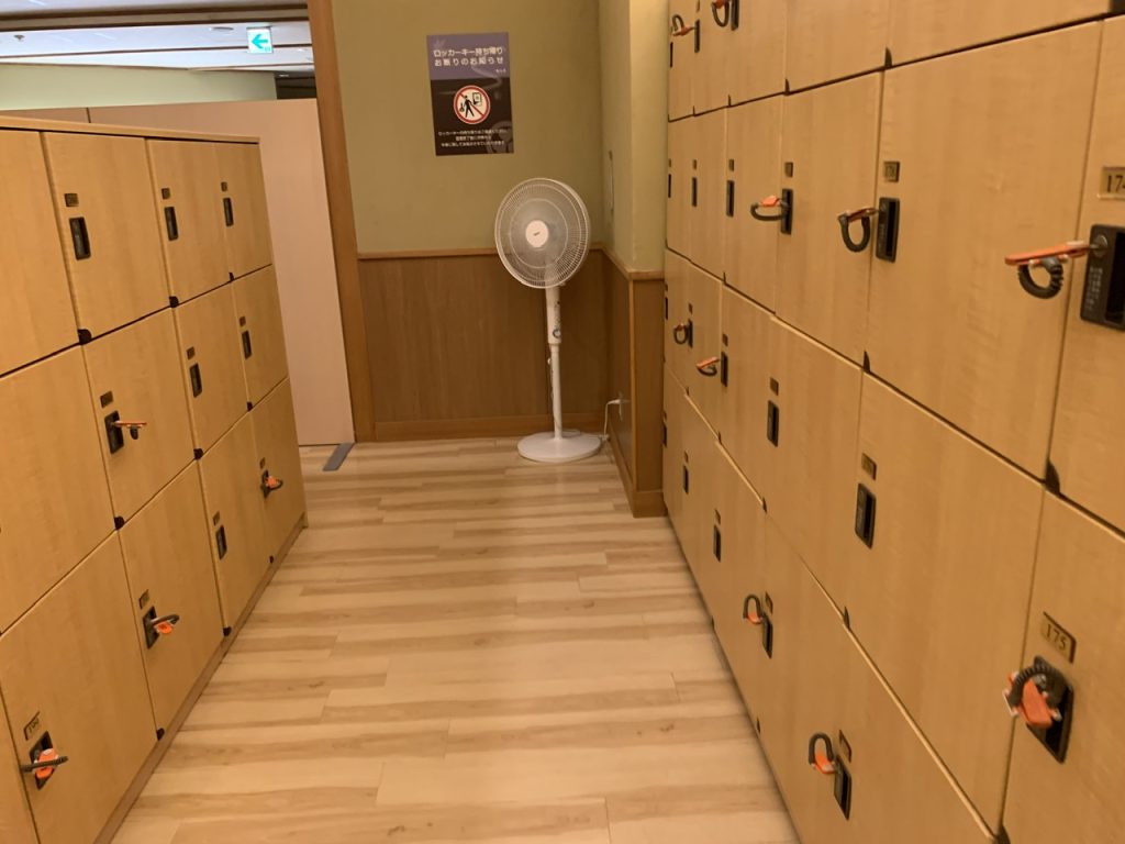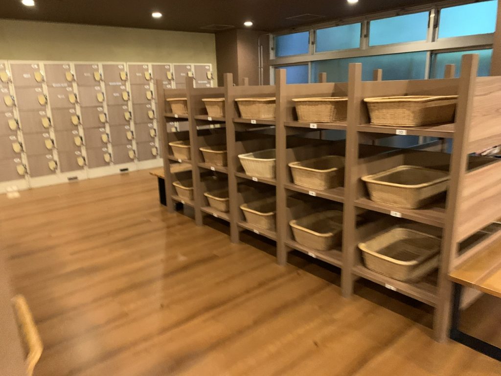 脱衣所はカゴと100円返却式ロッカーが選べます。