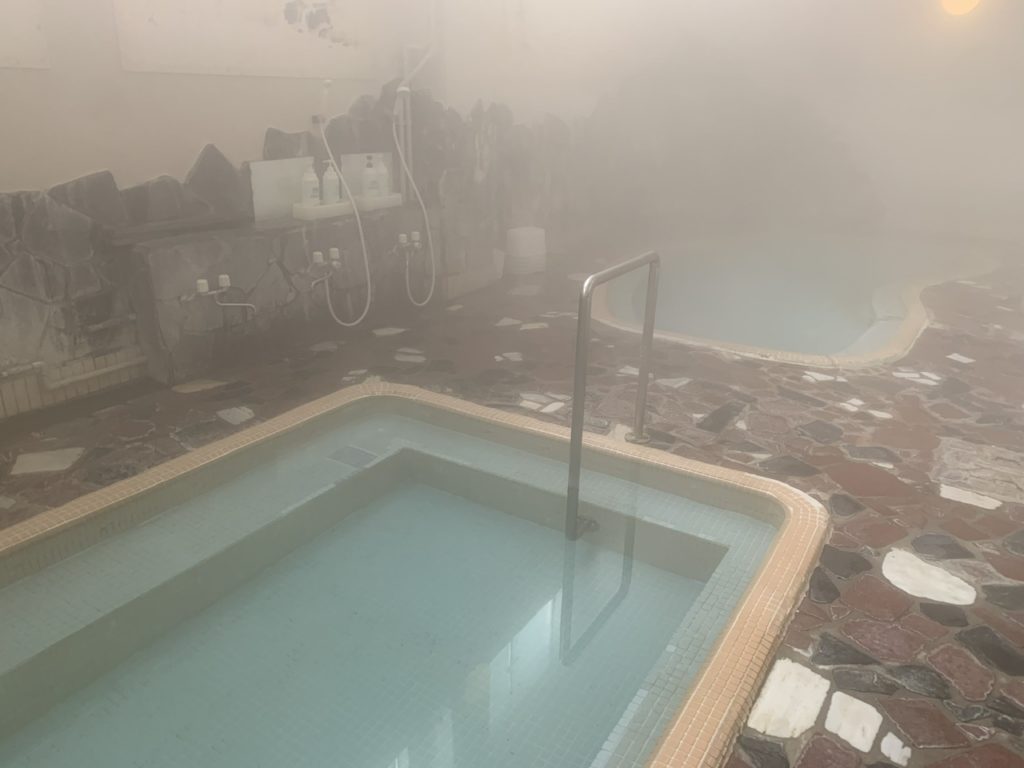 熱い湯とぬるい湯の浴槽があり、ぬるい湯の浴槽はかなりぬるいのでじっくりと入ることができるので湯治向きのお風呂だと思います。
