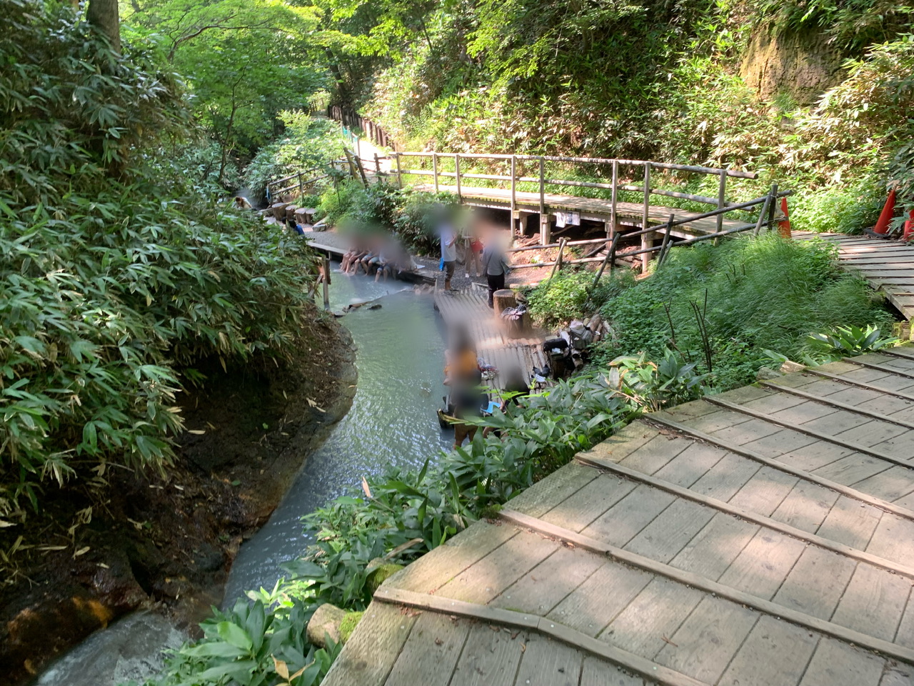 足湯場が見えてきました!沢山の人がいます。