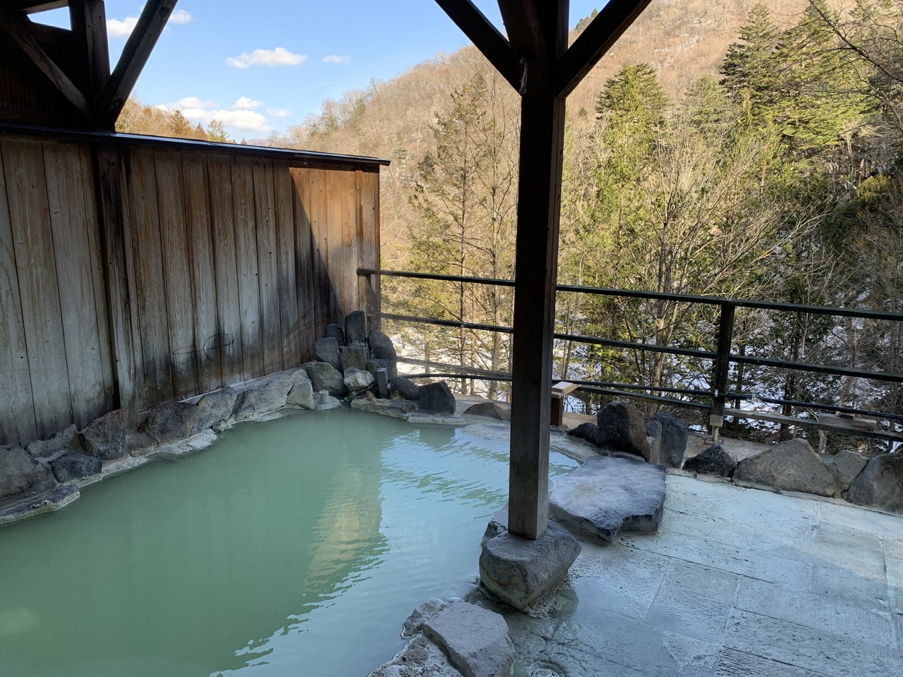 露天風呂は高台にあるので眼下に川を見ることができて、自然を感じて温泉に入れて気持ちがよいです。