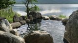 露天風呂は丸い浴槽となり、なんとか3人位は入れる大きさです。