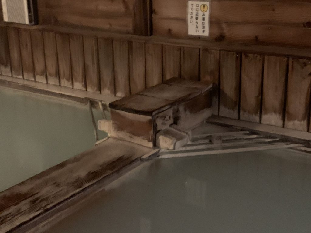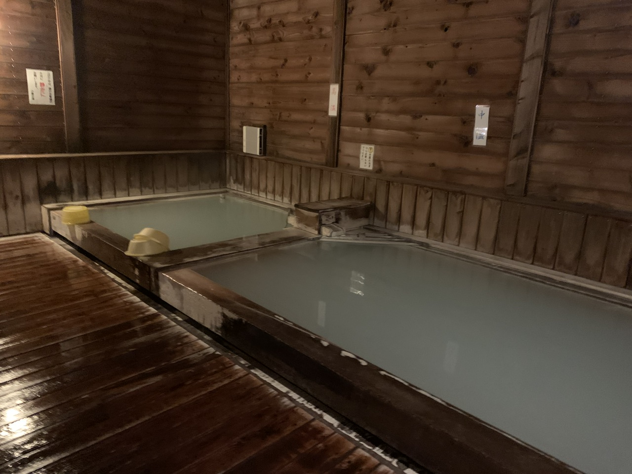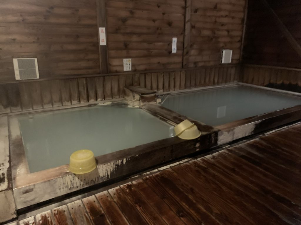 内風呂の浴槽は2つあり、左が熱い湯、右はぬる湯でした。