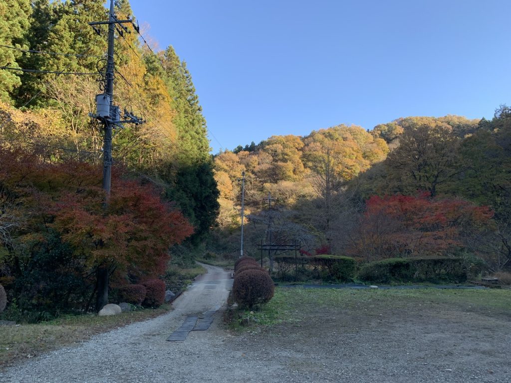 道も細いため少し不安になる山道を川沿いに進んでいくと宿が見えてきました。