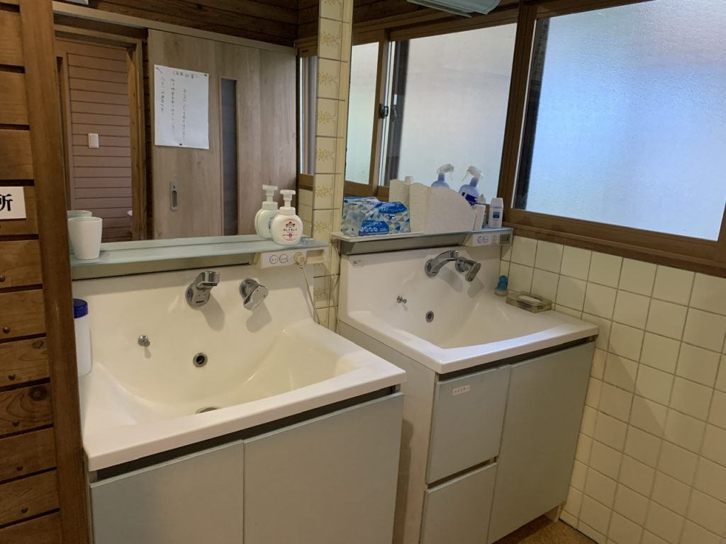 脱衣所は2つそれぞれ別ですが、洗面台は共用となり、化粧水と整髪剤がありました。