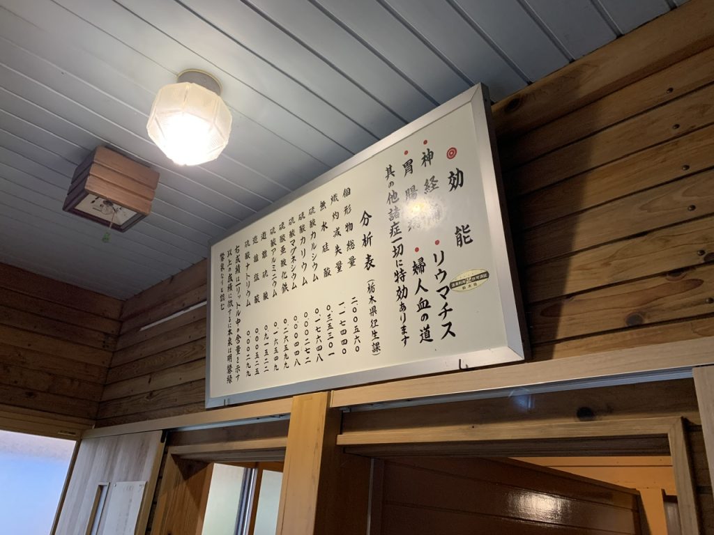 - 泉質:単純鉄冷鉱泉(低張性弱酸性冷鉱泉)