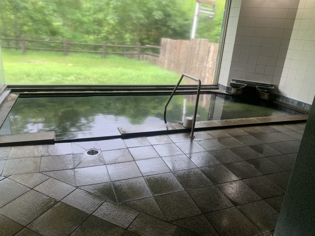 内風呂は大きな浴槽が2つあり、熱い湯とぬるい湯で分かれていました。