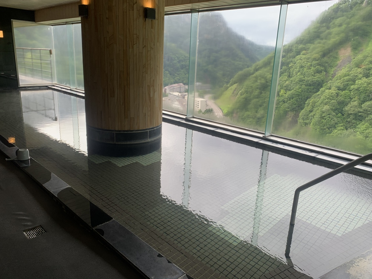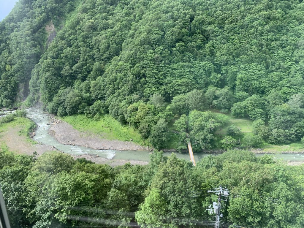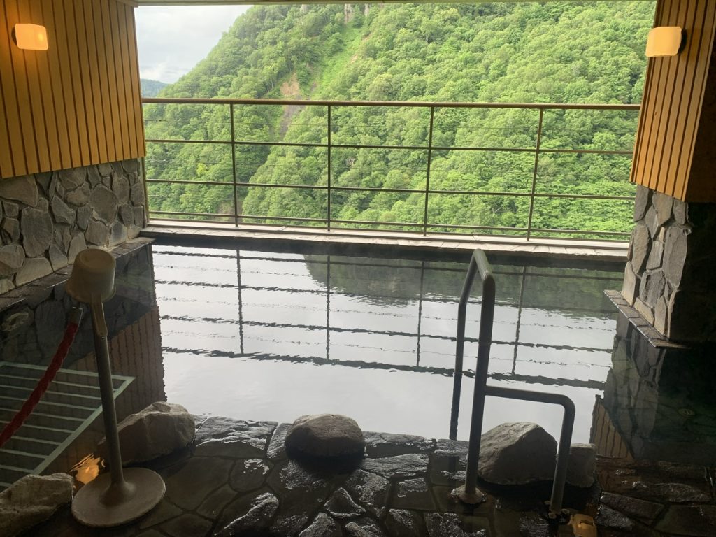 窓から広がる層雲峡の景色を一望しながら温泉に入ることができる最高の景色です。