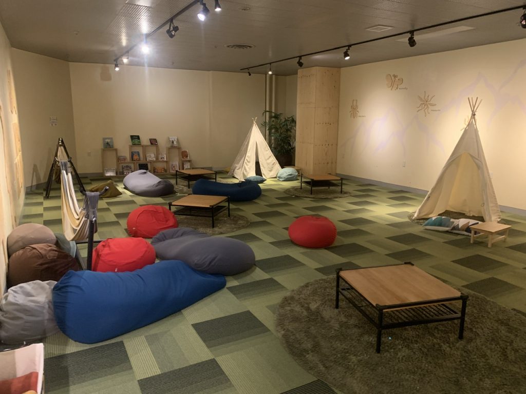 休憩スペースもキャンプな雰囲気の作りで落ち着いたスペースでゆったりできそうです。