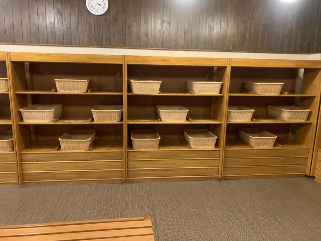 脱衣所はカゴでした。