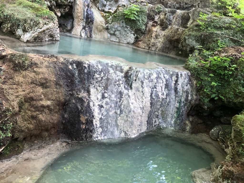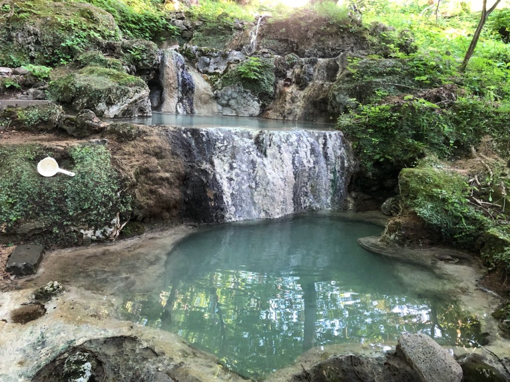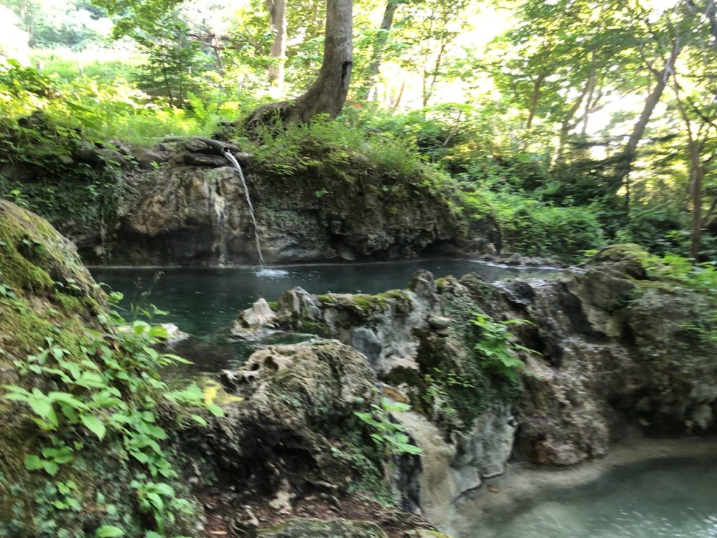 自然に溶け込んだ岩の浴槽は滝の様に流れ落ちて滝壺が浴槽になっていました。