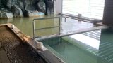 内風呂は窓側に15ほどは入れる大きな浴槽があり、湯口から惜しげもなくかけ流されているお湯は最初は透明ですが、湯船で乳白色に変わります。