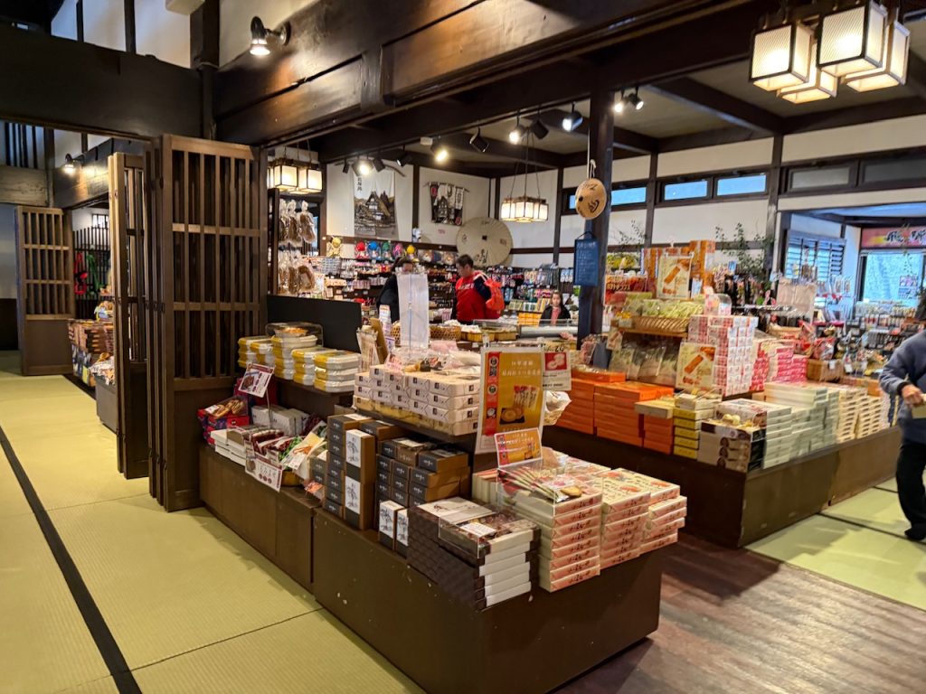 昔ながらの古民家風の建物に入っていくとお土産店や休憩スペースなどがあり雰囲気がいいです。