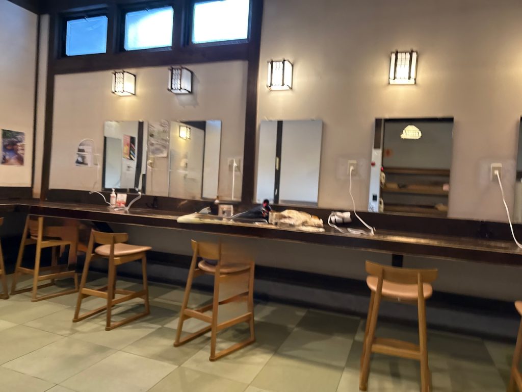 洗面台は2つ、ドライヤーは6つと有料ですがダイソンのドライヤーがありました。