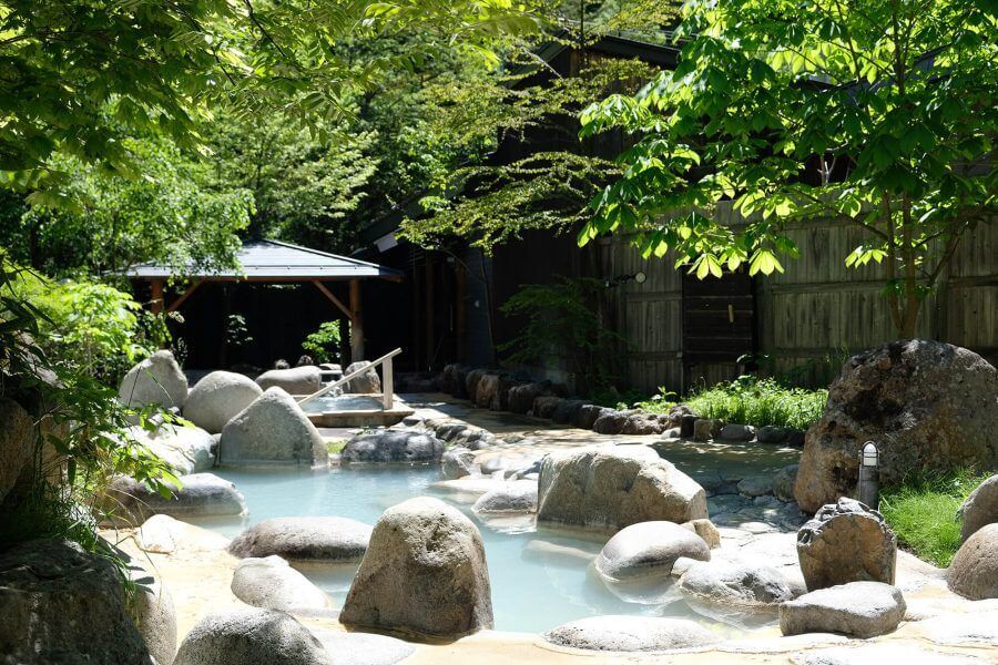 平湯温泉でシンボル的な温泉施設となる「平湯の森」は広大な敷地に男女合わせて16つの露天風呂があり、森林浴と温泉浴を同時に楽しむ事ができ、築300年以上の古民家を移築した合掌造りの休憩処やレストラン、宿泊棟、コテージなども兼ね備えた温泉リゾートです。