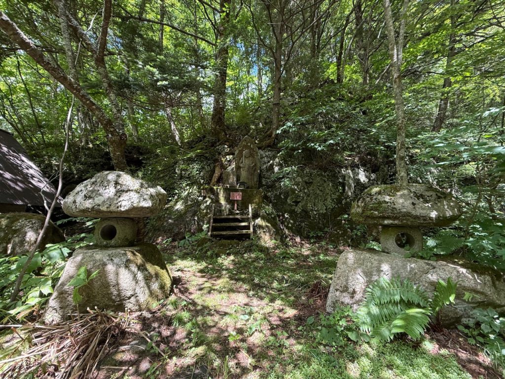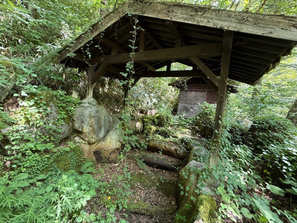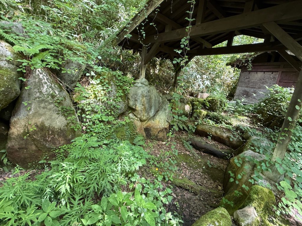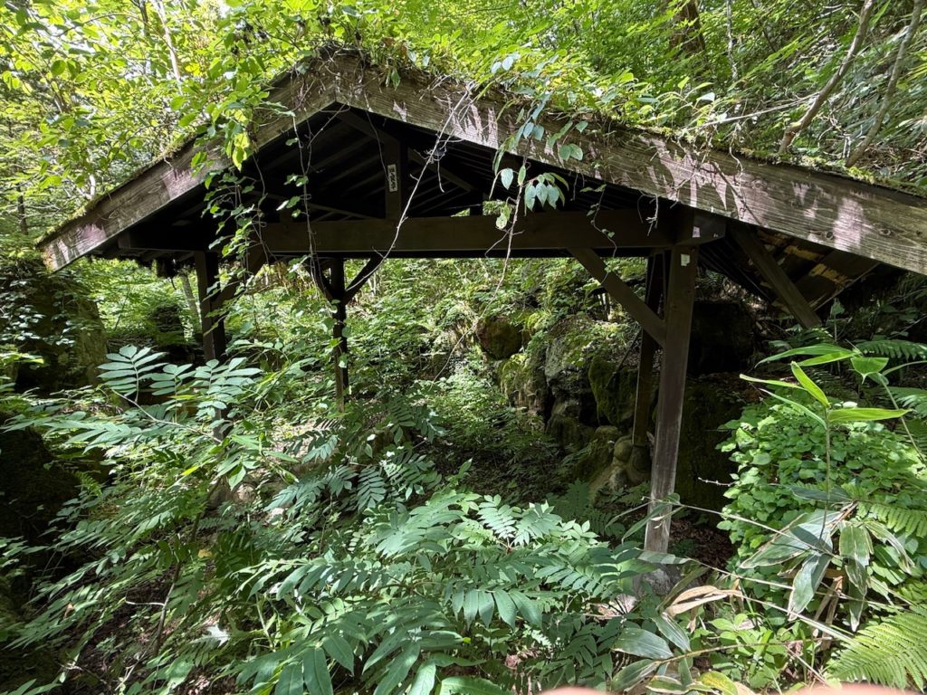 岩の露天風呂は草や苔が生い茂っていますが、きれいに清掃すれば使えそうな雰囲気です。