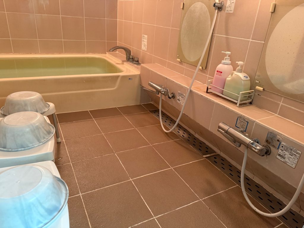 内風呂が1つあり、2人入れる大きさですが、ひとりで使用したので広々とゆったりと入浴できました。