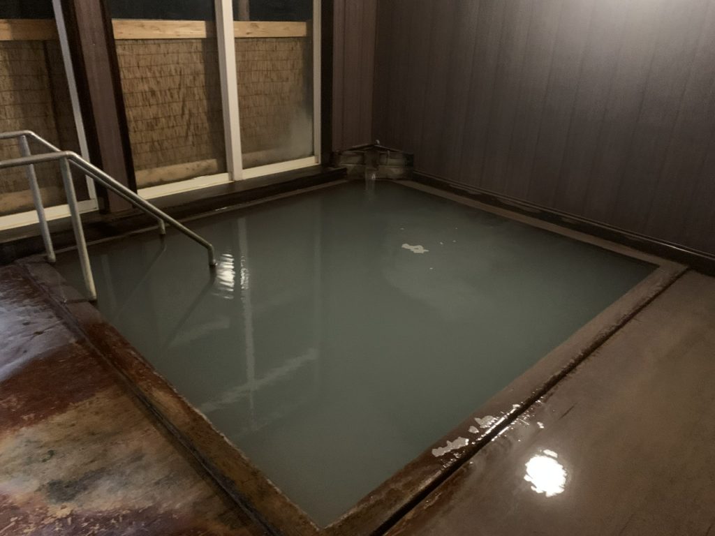 泥湯はひとり用の大きさの浴槽で足元に泥が沈澱しています。触ると手が灰色になります。