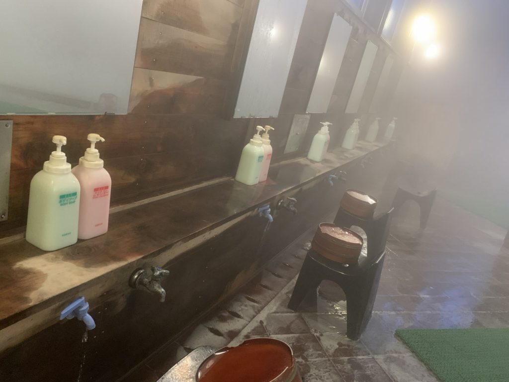洗い場は10個位とたくさんありますが、シャワーは無く桶にお湯を溜めて流す方式です。