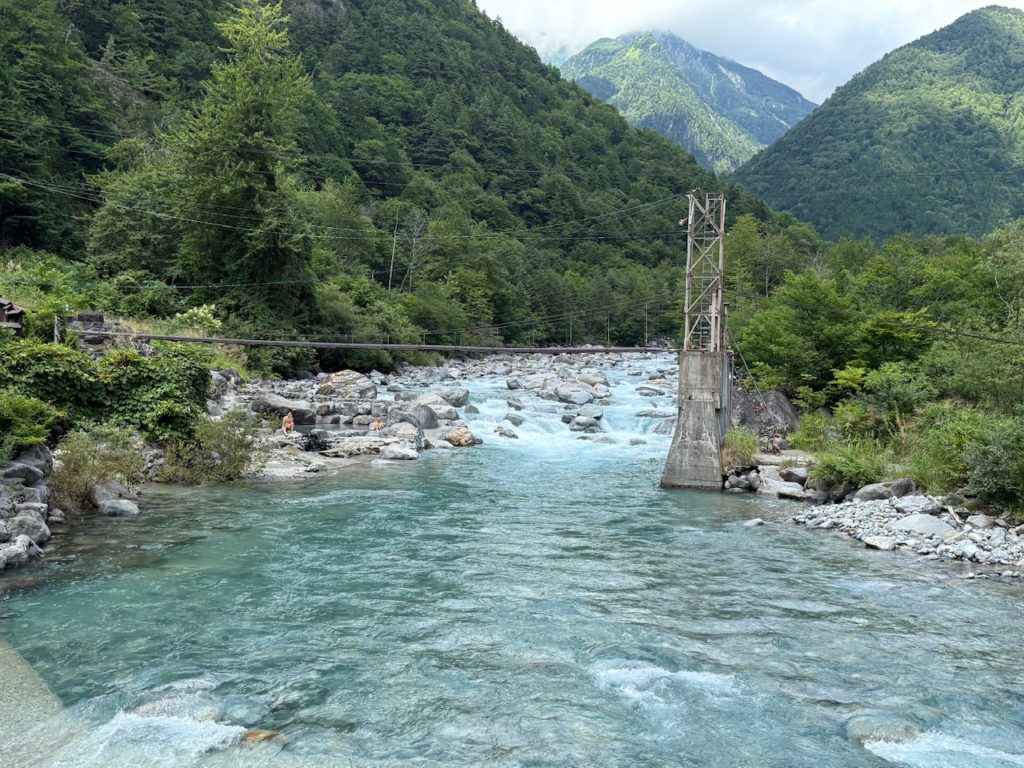 橋の上からはアルプスの壮大な風景と美しいブルーの河川を見渡すことができます。