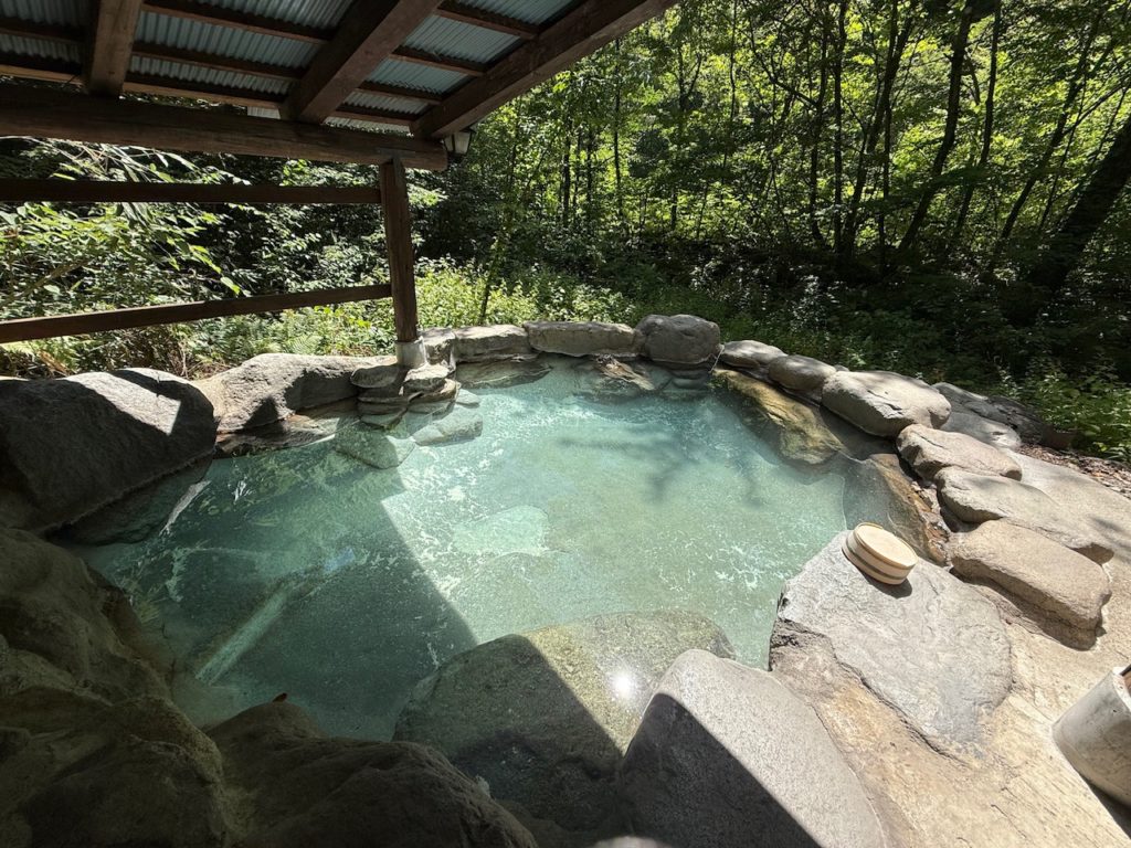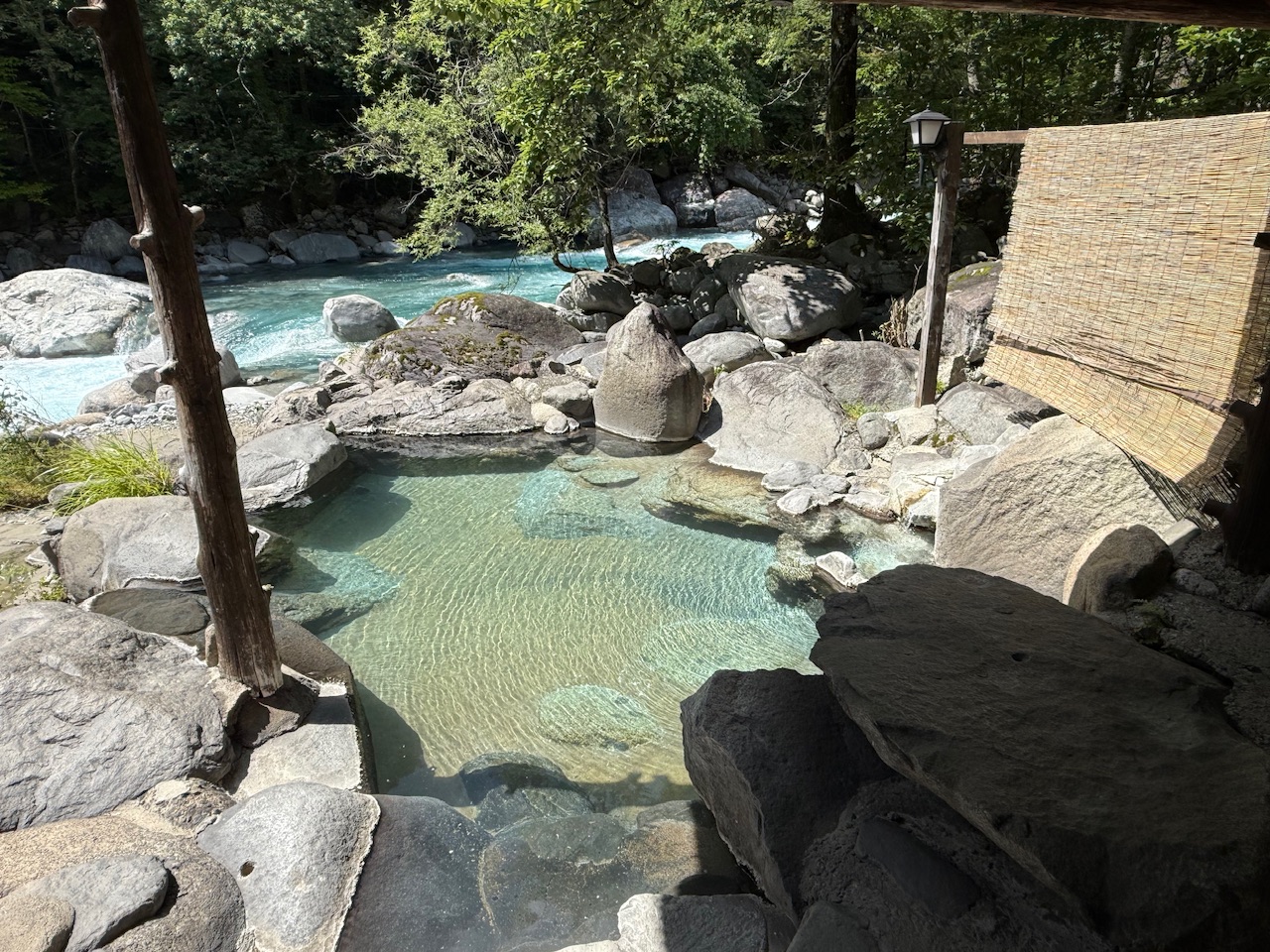 目の前に河川を眺めながら、誰にも邪魔されずゆっくり入浴できる素敵な露天風呂です。
