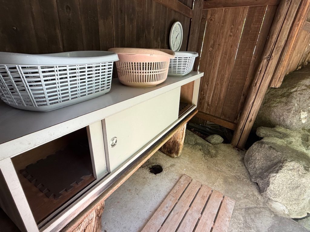 脱衣所はカゴとなり、着替えるのみとなりますので、洗面台やドライヤーなどはありません。