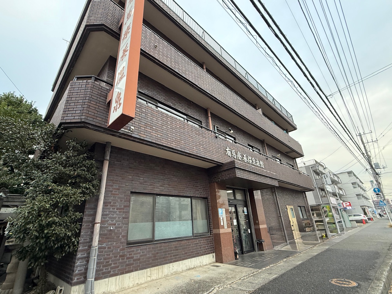 東急田園都市線鷺沼駅からバスに乗って中有馬停留所を下車して、バス通り沿いを1分ほど歩いた所に旅館がありました。