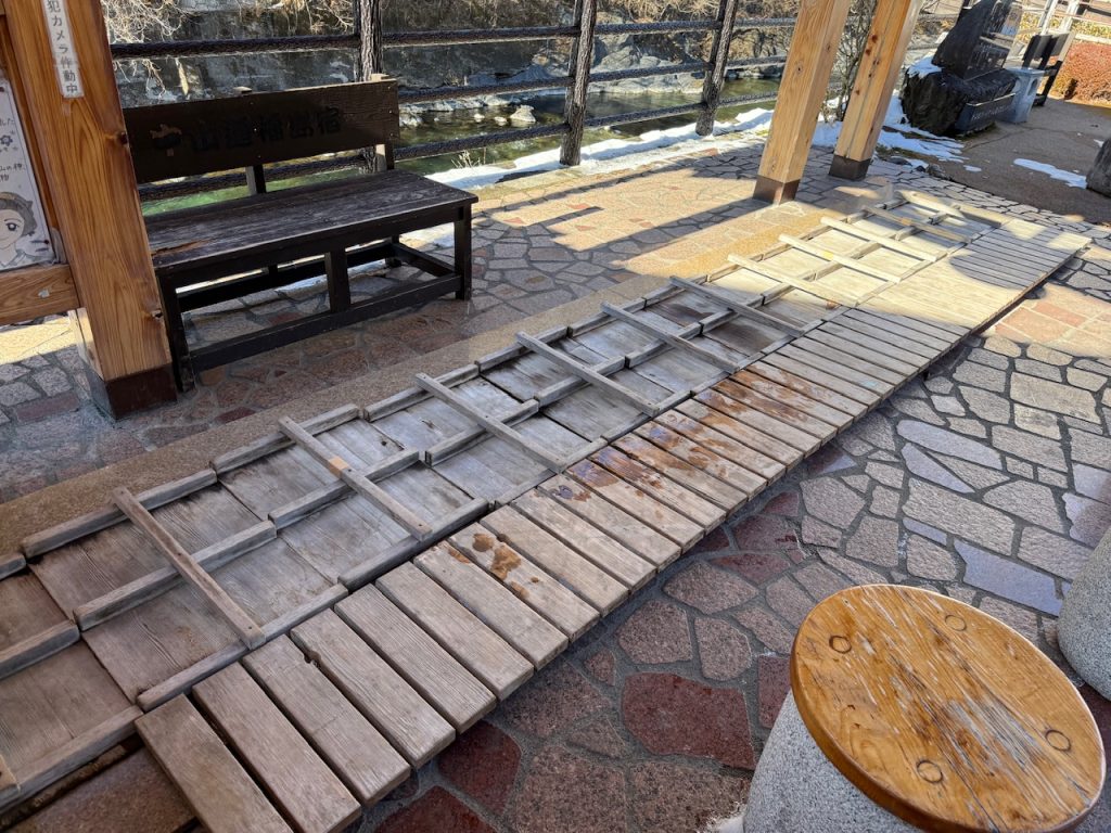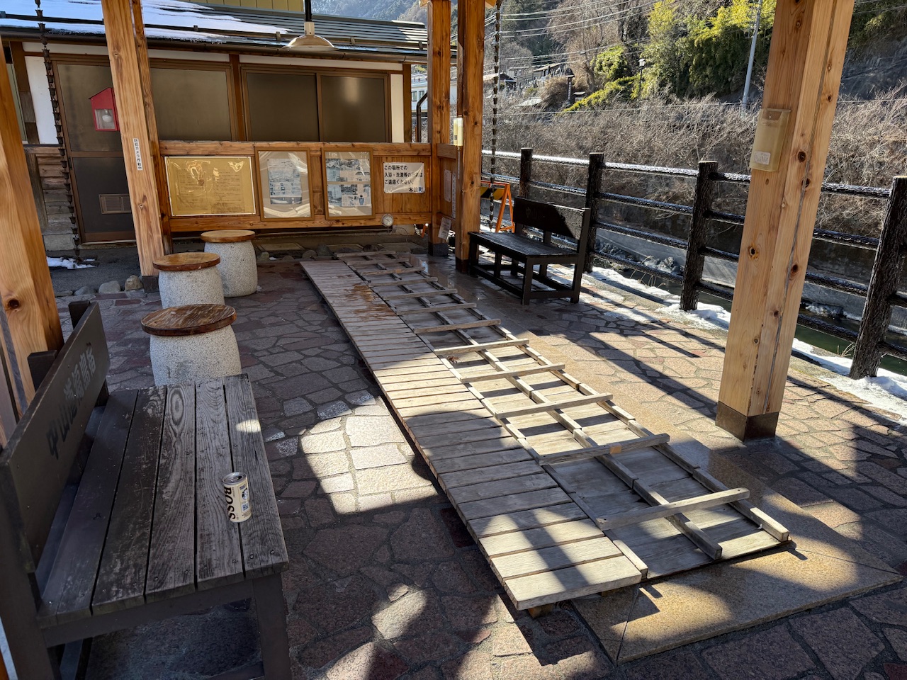 訪問したのが冬でしたので、冬はやってないのだ・・と思って入浴は断念しましたが、後からネットで調べた所、こちらの足湯は蓋を開けて入る方式の足湯でした。