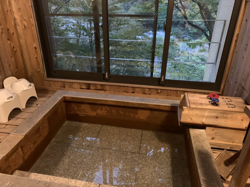 隣に正方形の浴槽が鹿の湯の源泉のお風呂です。