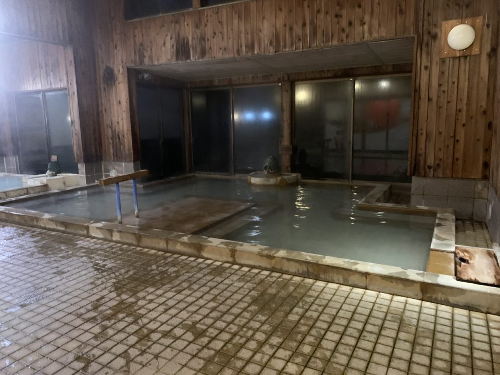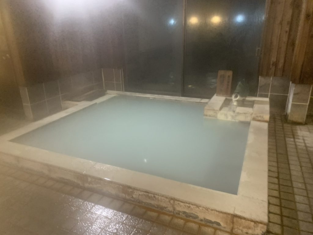 4人程は入れる大きさとなり、白濁の湯はしっとりとして気持ちがよいです。