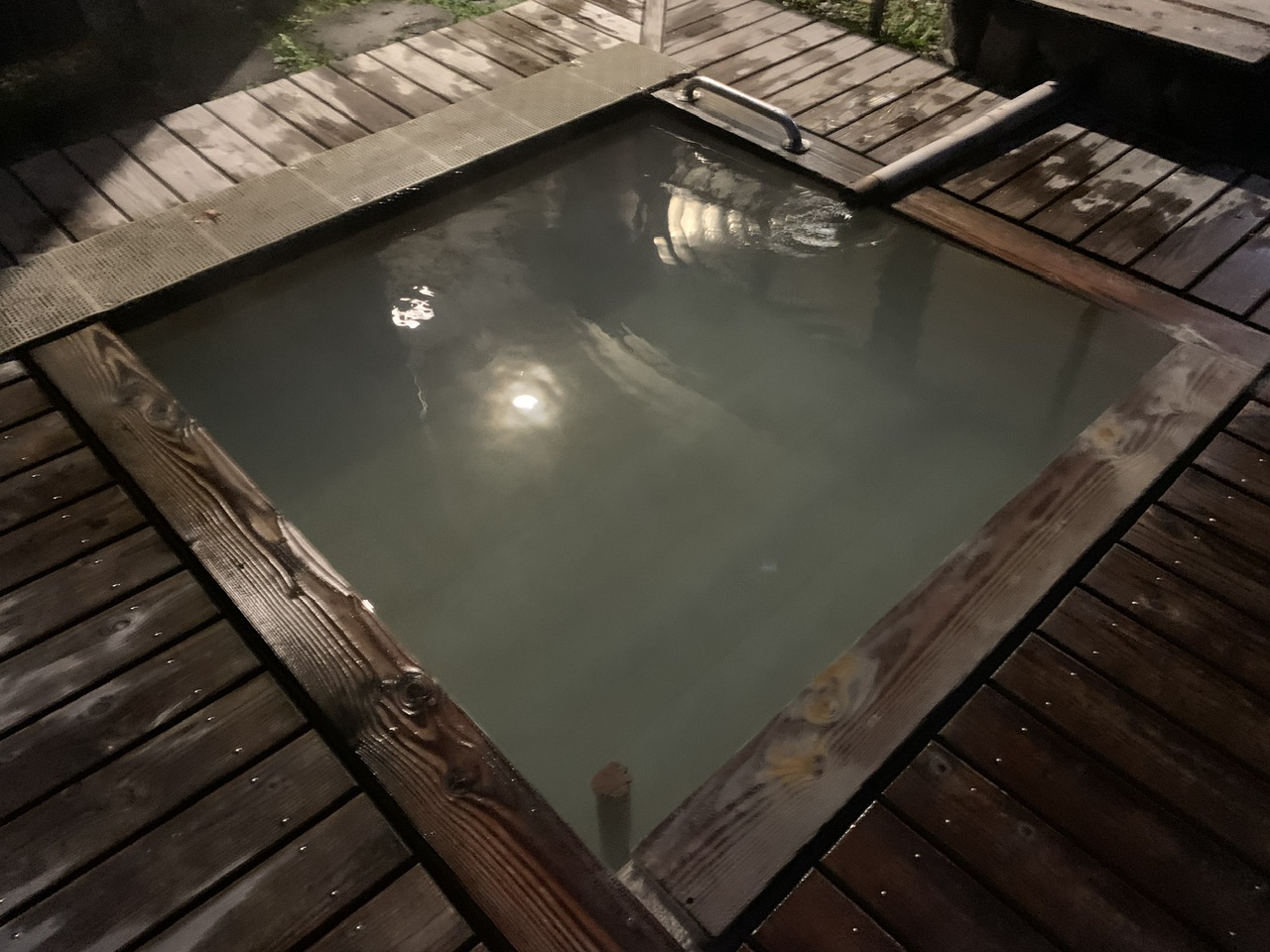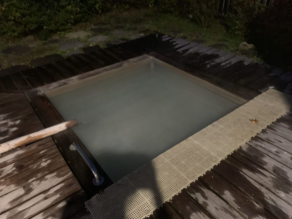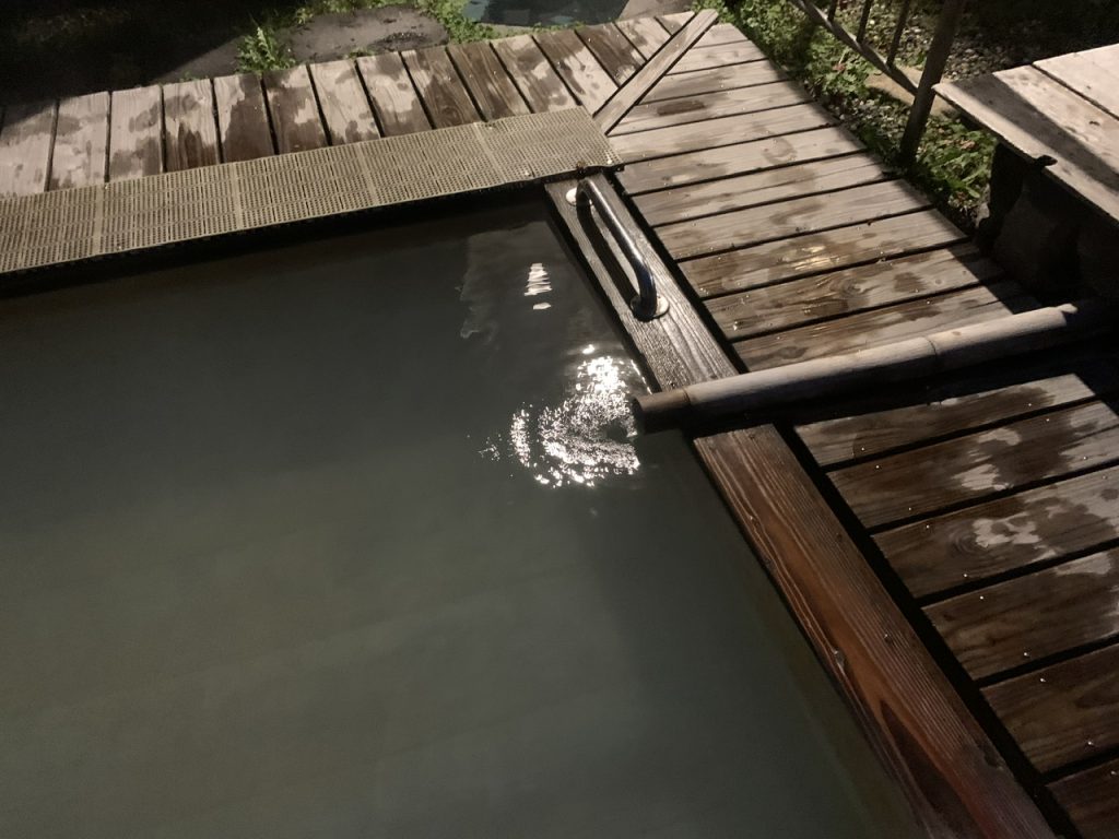 露天風呂は少し小さめに感じますが、訪問時はひとり独占で入れましたので、夜風を感じながら眼下に見える那須温泉の街の景色を楽しみました。