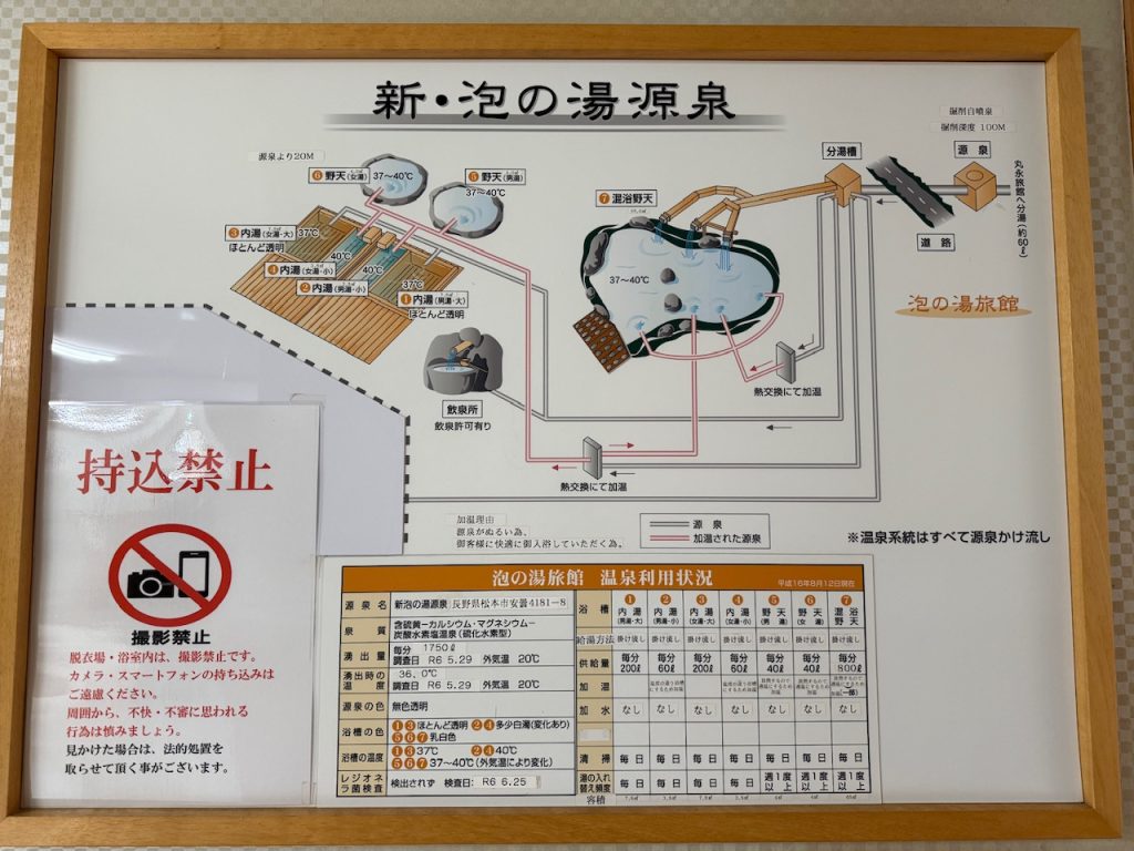 ロビーには源泉をどのような構造で浴槽に届けているか掲示がされており、源泉を配給している仕組みが分かって温泉を大切に管理している宿ですね。