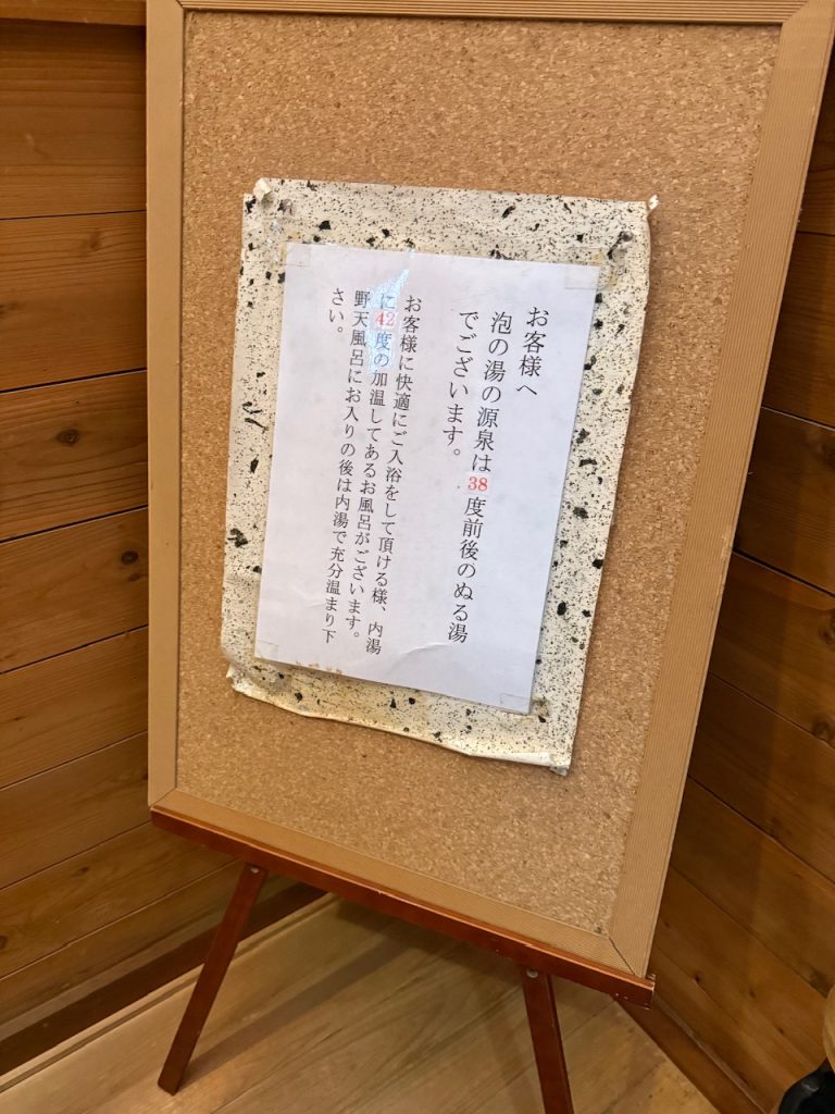 大きい方の浴槽に入ってみると掲示の通り本当にぬるくて温まるという感じの温度ではなかったです。