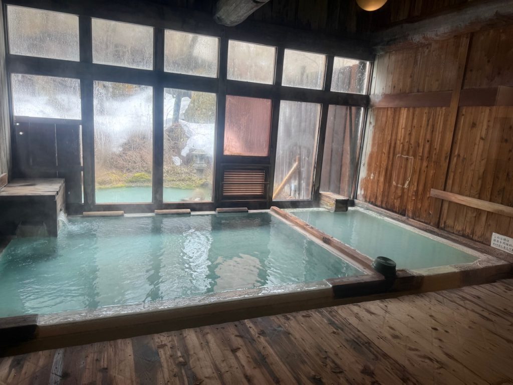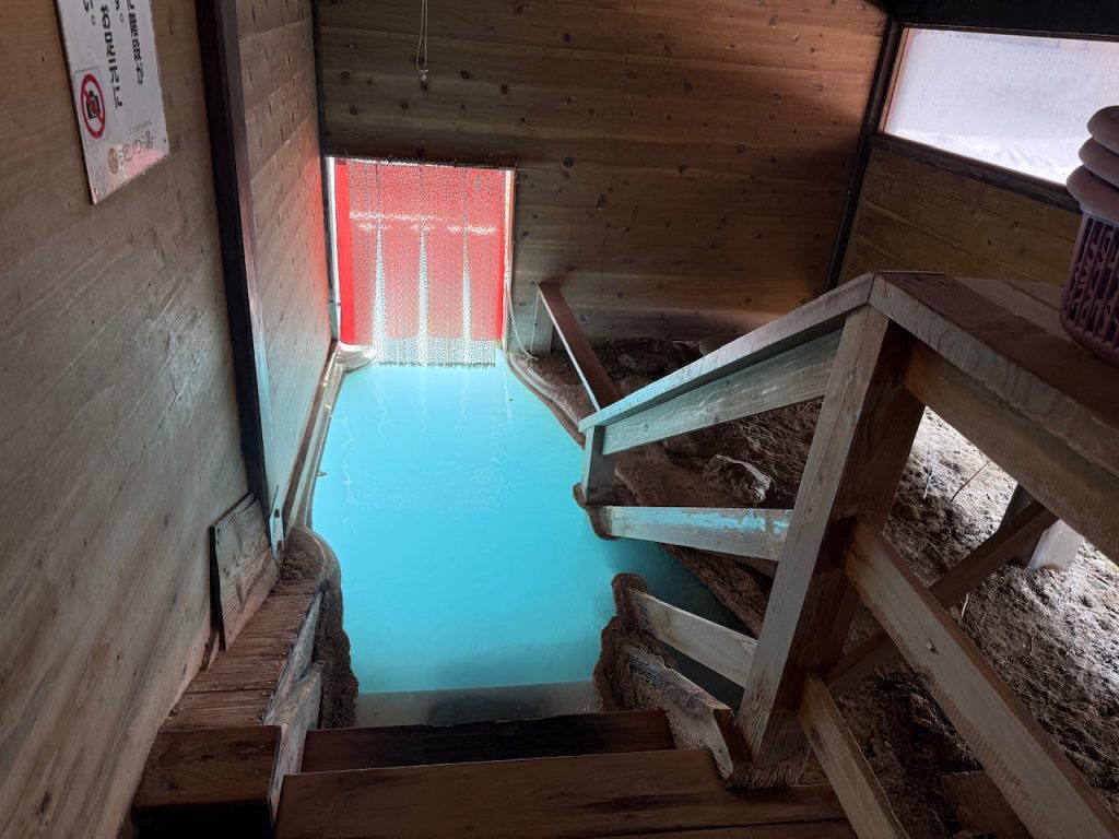 しっとりとした硫黄の香りが漂うブルーの白濁した湯は特別感がありました。