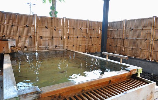 露天風呂は檜の木を使用した浴槽が1つあり、4人程位の大きさでした。